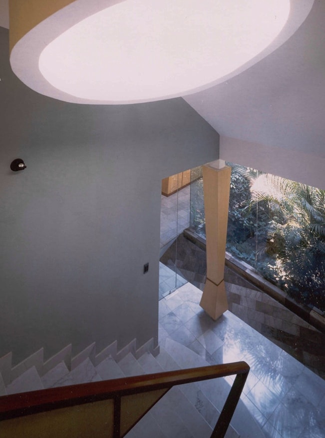 En uno de esos predios se descubrió un patio que comenzó a funcionar como pulmón, el cual a través de una mezcla de usos ocupó el lugar de un organizador espacial que penetra en las áreas contiguas a manera de una serie de giros que juegan con la distribución, semejando aquellos cuadros de Malevich que retan al observador a descubrir esta clave oculta que permite engranar todo el panorama visual del edificio.
