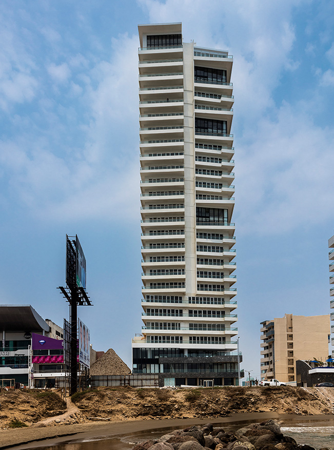 Este proyecto está basado en los conceptos de faro y esquina; las dos condiciones contextuales más prominentes del sitio, que se mezclan cuestionando oscilatoriamente entre ellas para forjar la forma y presencia de la torre.