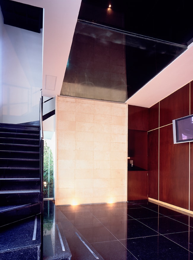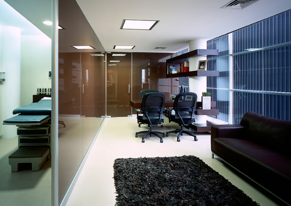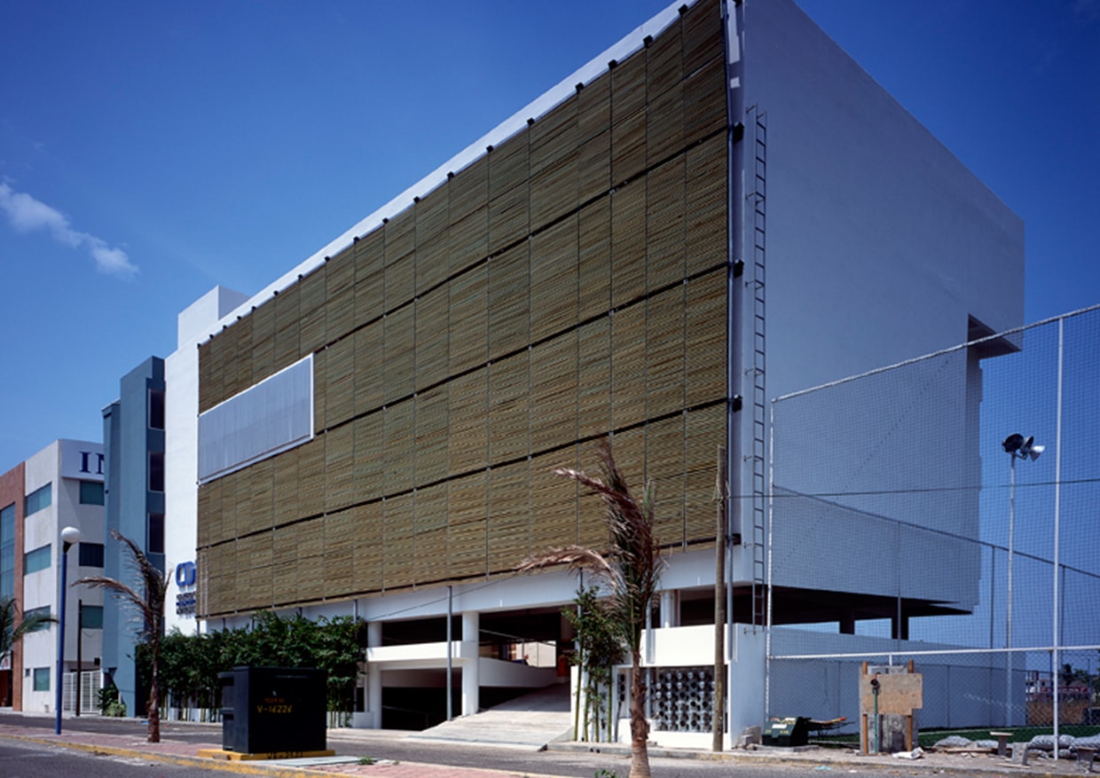 La imagen exterior pretende homogeneizar los diferentes usos internos a través de una celosía plana de madera, la cual también disipa la luz poniente hacia el interior de los despachos médicos.