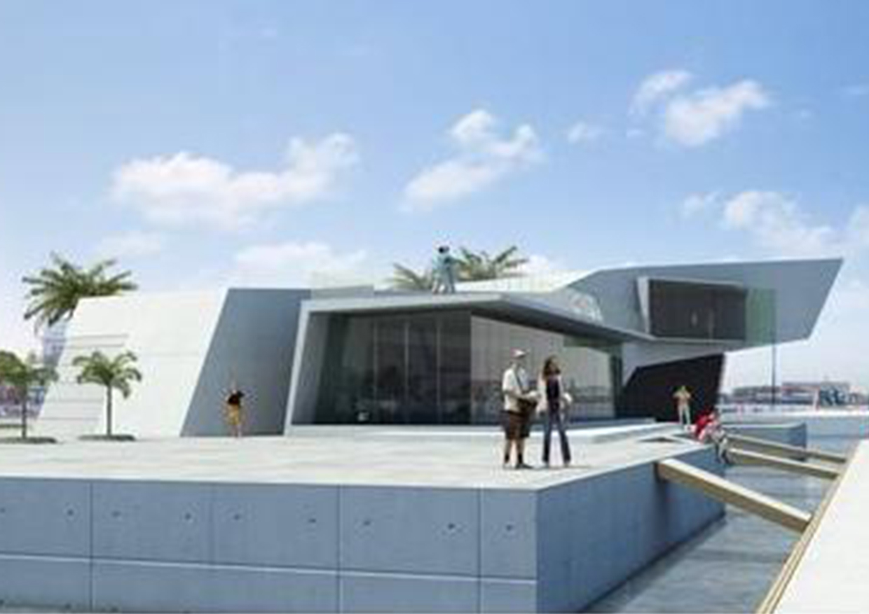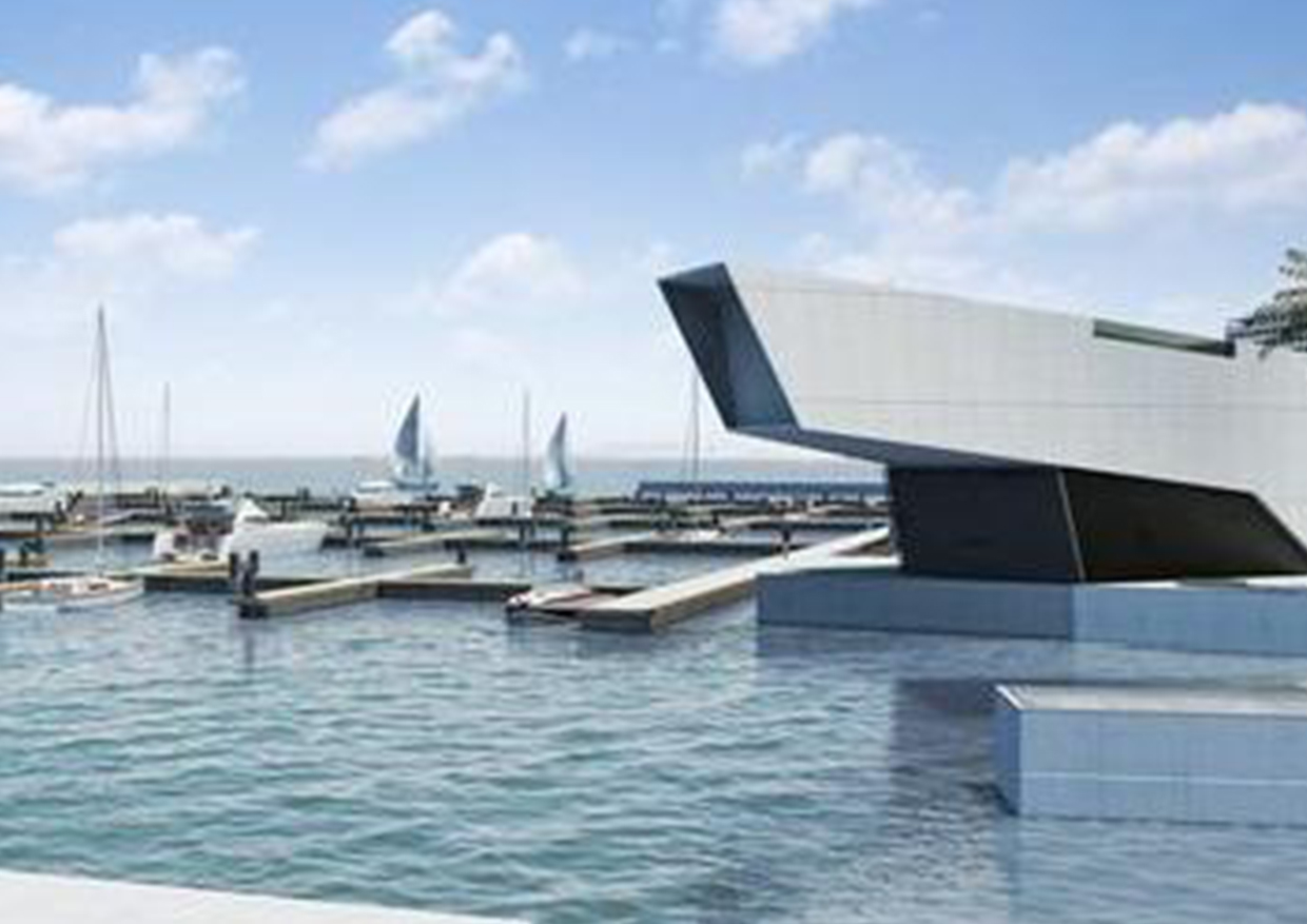 El proyecto del Club de Yates parte de la premisa de la colisión de escalas urbanas y marítimas de la zona; este complejo albergará una estación para 160 embarcaciones de mediano y gran calado así como una casa club.