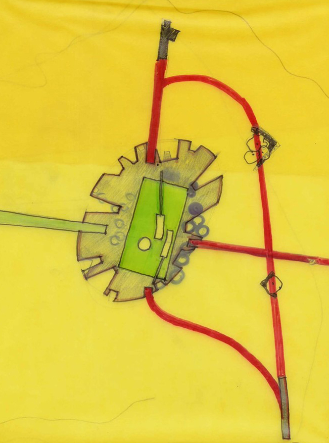 El proyecto gira en torno a 3 momentos principales dentro de su recorrido: 1) Zona de contacto natural: se rescatan la mayoría de las sendas existentes y su trazo original. 2) Espacios de transición: se integra al visitante una plaza-amortiguador de forma orgánica que sirve de transición entre la plaza central y la zona de vegetación natural. 3) Plaza principal: la culminación del recorrido; está formado por una plaza regular que pretende geométricamente respetar la plaza original, ésta es una cubierta de una alfombra de pasto y alberga dos edificios que representan este encuentro de culturas, se pretende crear espacios que se recorran a través de rampas muy sutiles permitiendo al visitante culminar su estancia en una terraza-mirador.