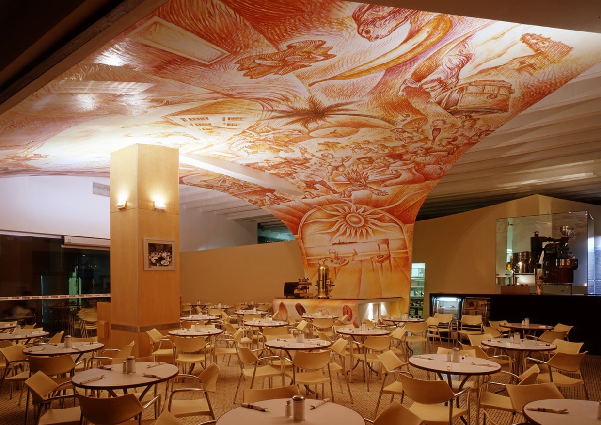 La idea principal giró en torno a generar un gran mural que reúna las tradiciones y costumbres del puerto de Veracruz, recalcando la convivencia y la idea de espacio neutral-democrático del café más tradicional del país.