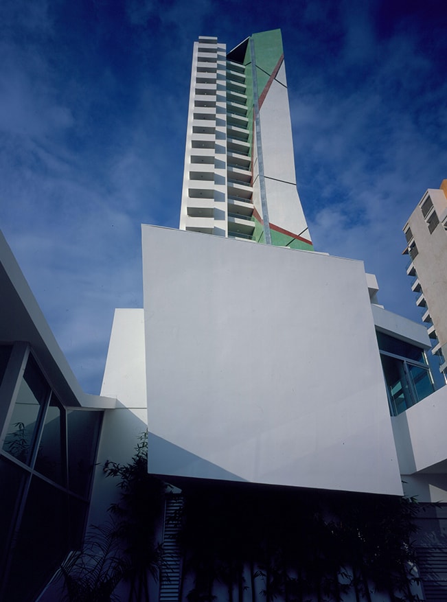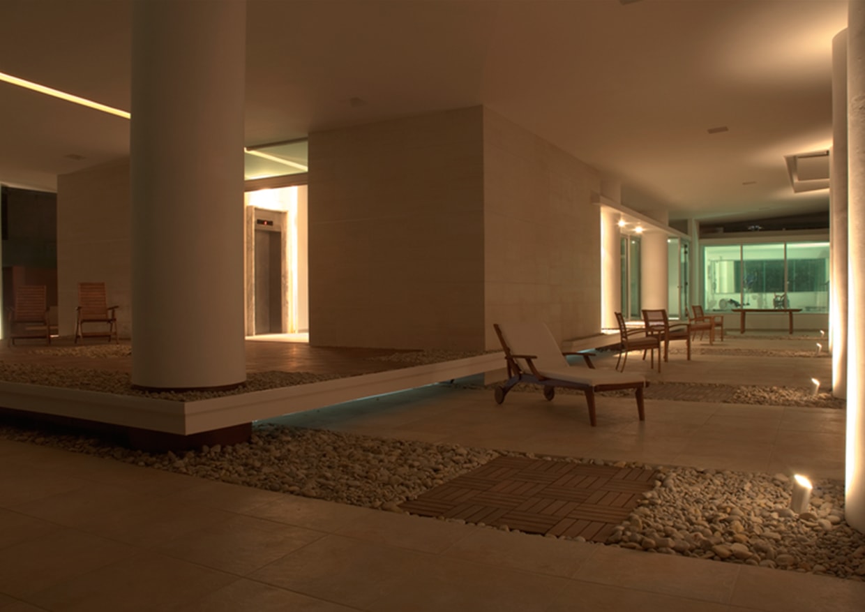 Como referencia análoga, el edificio se despliega en 2 elementos que trabajan de manera complementaria: la base permite un recorrido lineal y una conexión directa playa-ciudad a nivel público; mientras que los departamentos pretenden enfocarse a las vistas generales a través de espacios completamente abiertos hacia el mar y la ciudad, en una clara influencia del diseño de estructuras marinas.
