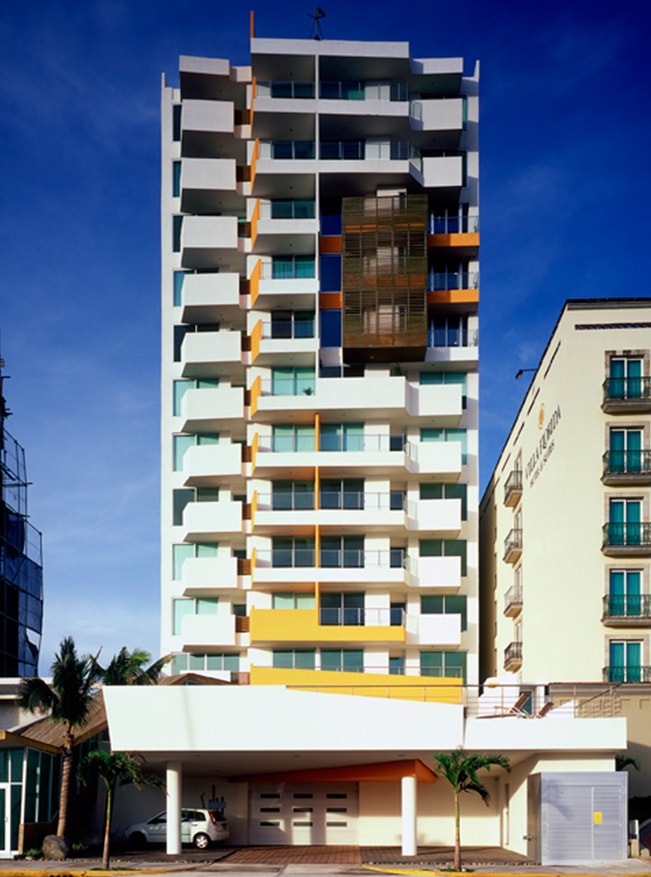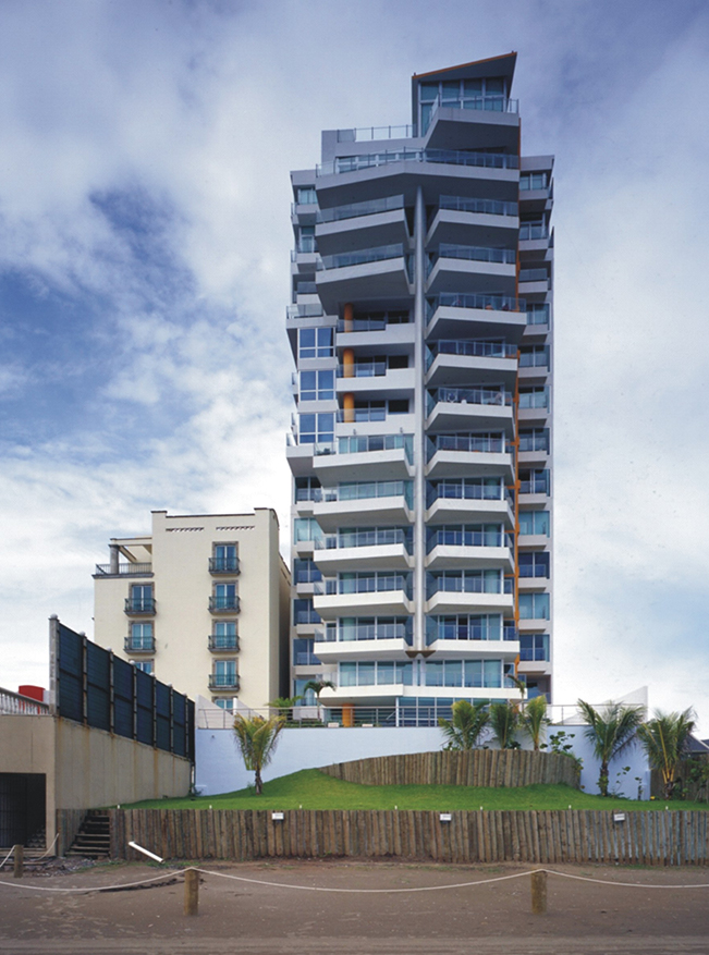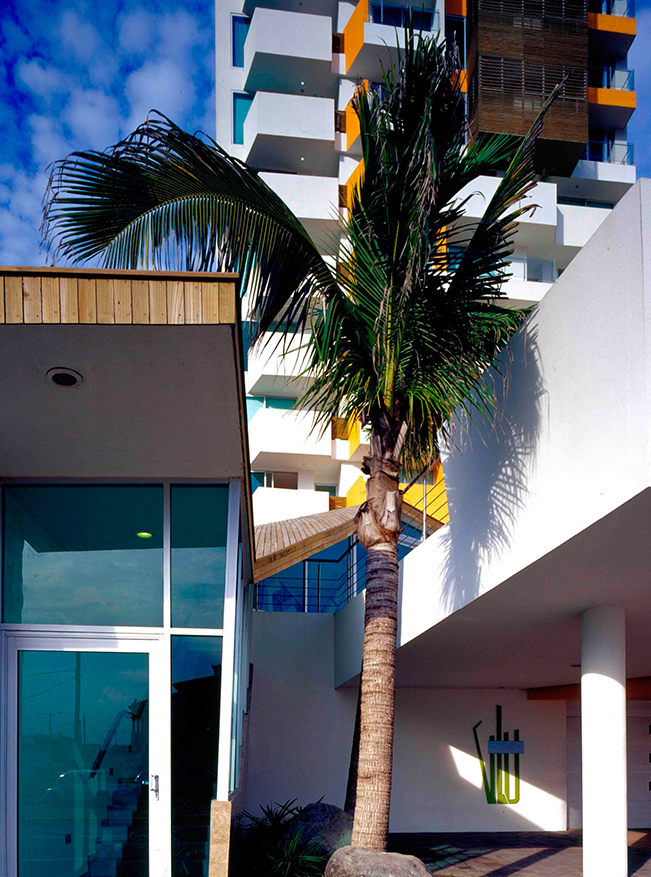 En respuesta a su antecesora, Torre Playa, situada a 60 mts de distancia, y que presenta movimientos formales según las condiciones del viento del norte y su entorno marino, Torre Vlu trata de detener dicho movimiento para delimitar la influencia del conjunto, creando una transición visual con la imagen estática de los edificios en su colindancia del lado sur.