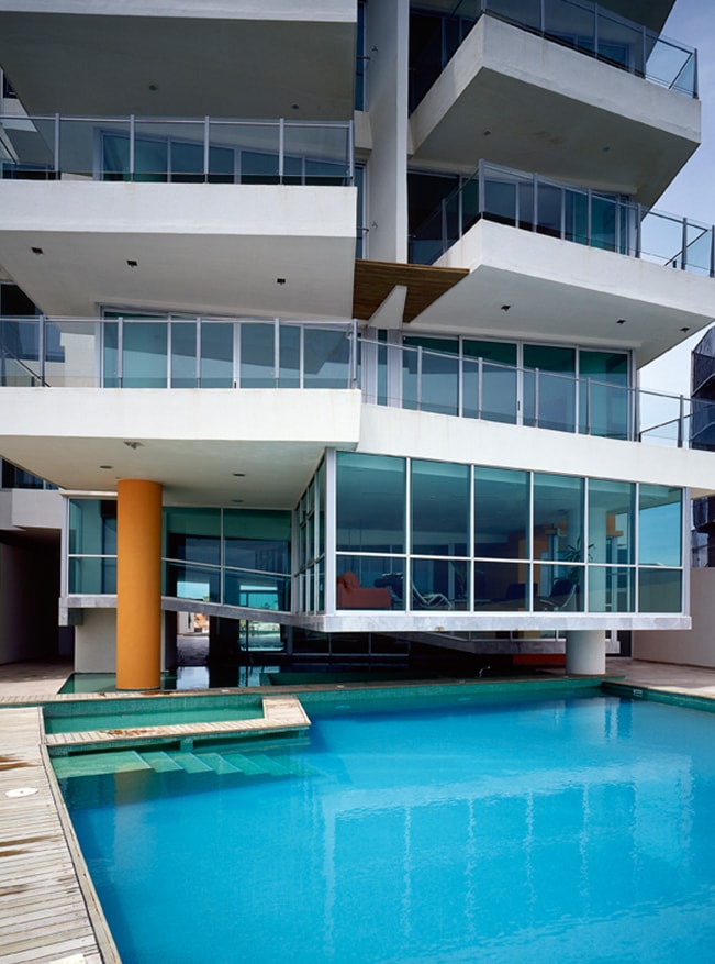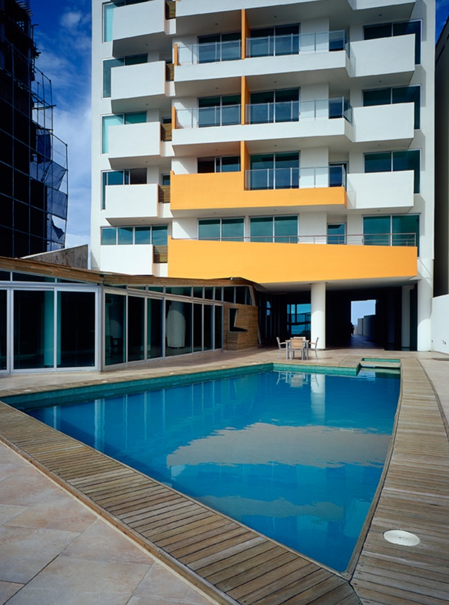 A nivel perceptual, se crea un recorrido a través de una cubierta que aumenta su escala, conectando el vestíbulo con la fachada principal, tratando de romper el esquema tradicional de los dos frentes; la cubierta se desdobla, se fracciona y escala verticalmente la fachada hasta unificar un gran muro que sostiene la losa superior, la cual se proyecta hasta la playa.